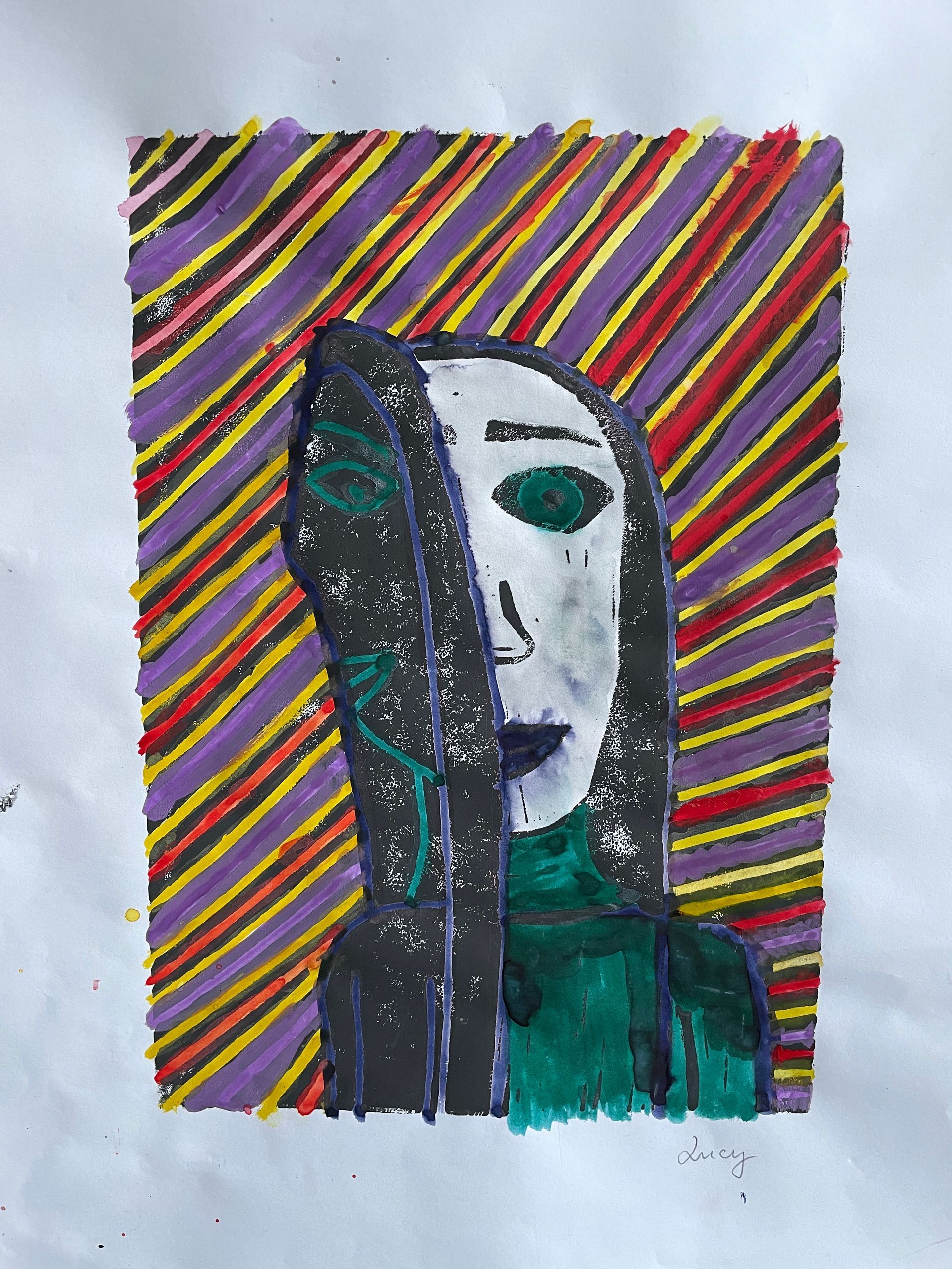 Hier sehen Sie einige Arbeiten der 9b und der 9d zum Thema " Kubismus" (Text u. Bilder: S. Fischer und V. Driller)
