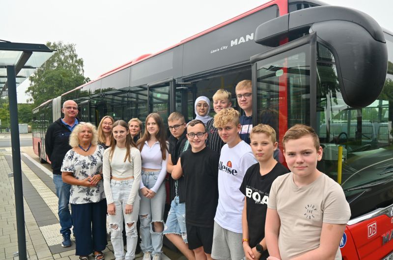 Für die fünf Schulklassen des neuen 5 ten Jahrganges wurde jetzt an zwei Tagen eine Busschule durchgeführt. Begleitet wurden sie vom Klassenlehrer und dem Team der Schulsozialarbeit. Mit einer Polizistin vom Kreis Paderborn und einer Busfahrerin vom BVO wurde mit den Schülerinnen und Schülern das richtige Verhalten an der Bushaltestelle, beim Einsteigen und der Busfahrt besprochen und geübt. Den Schülerinnen und Schülern wurden die Gefahren eines Busses eindrucksvoll gezeigt und demonstriert, wie zum Beispiel der große Wendekreis, den großen Toten Winkel des Busses und die Kräfte, die bei einer Vollbremsung des Busses entstehen. Die Schüler lernten unter anderem Abstand zu halten, die Schultasche richtig zu tragen, den sicheren Stand im Bus und deutlich hinter den Bodenmarkierungen der Bushaltestelle zu warten.